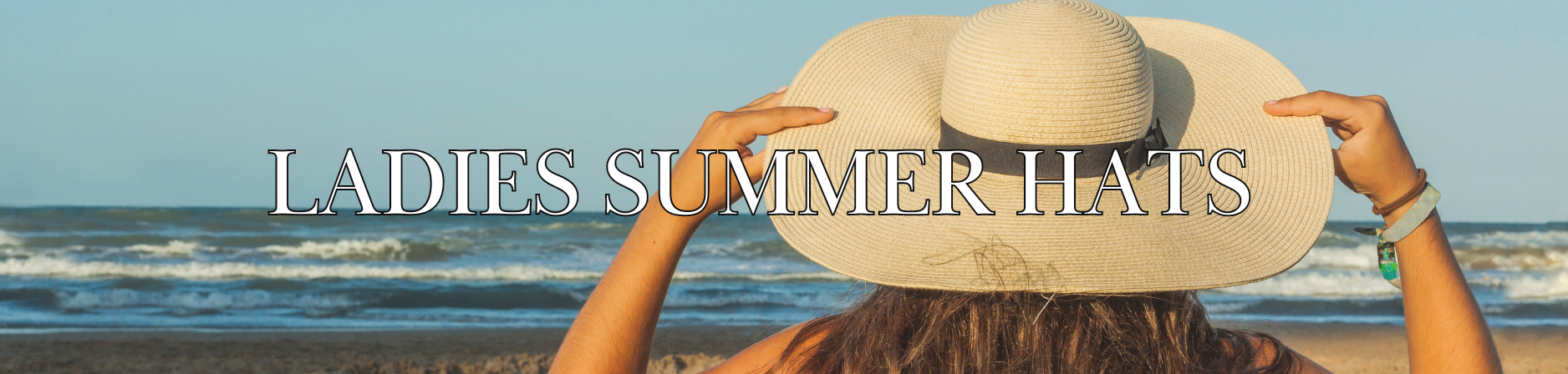 Ladies Straw Slim Black Ribbon Sun Hat - White
